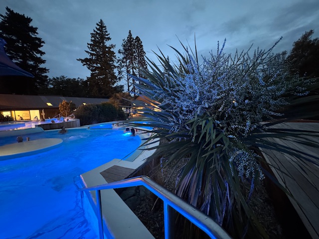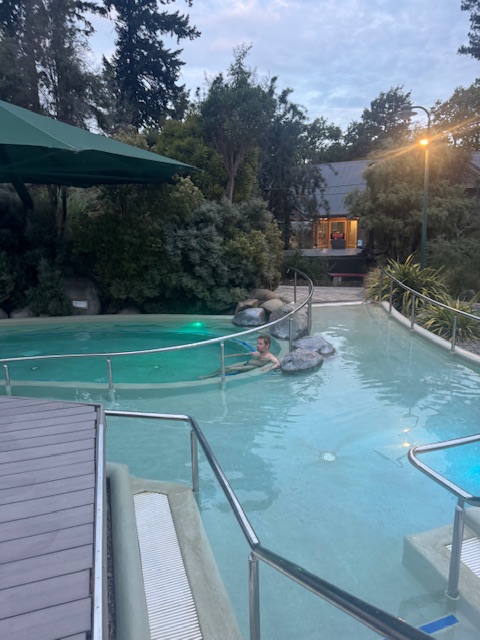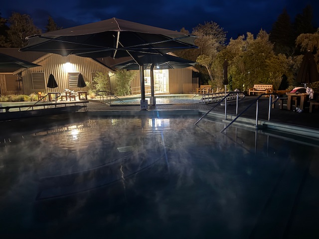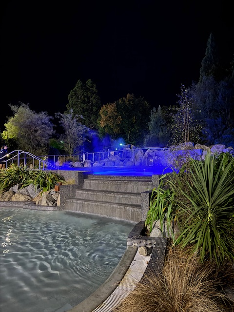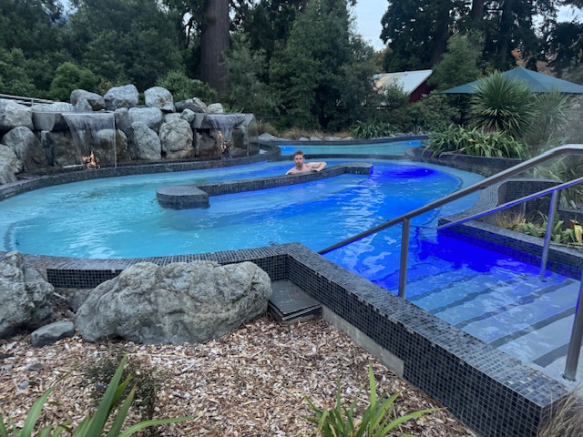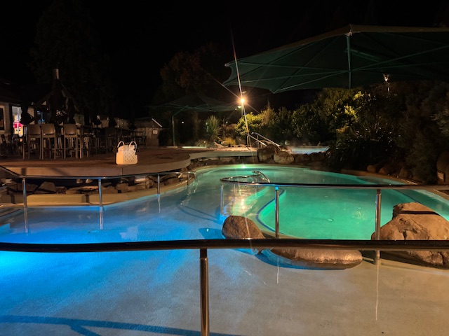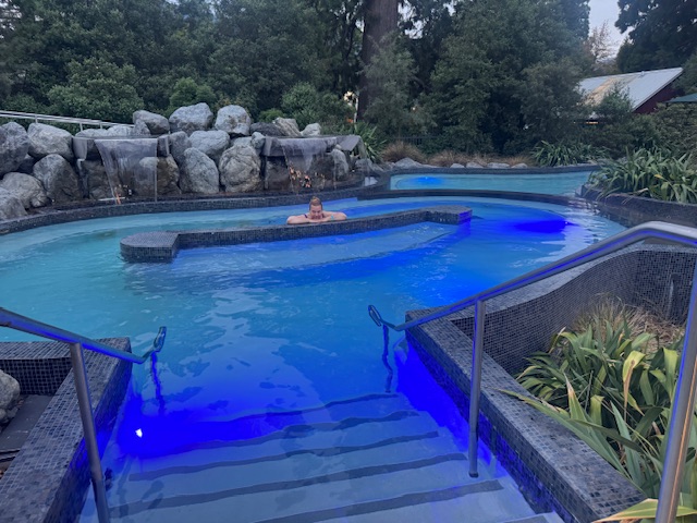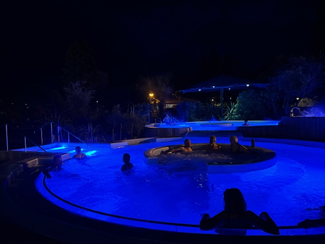 Det er et sted med 22 pools, nogle var til at svømme i andre til at lande i efter vandrutchebane. Nogle med mineraler i og andre med svovl i, så de lugtede lidt af rådden æg. Temperatur gik ned til 28 grader, de termiske lå mellem 32 og 42 grader. Kim var ikke glad for dem på 42 grader, med mindre han lige havde været under den kolde brugser.