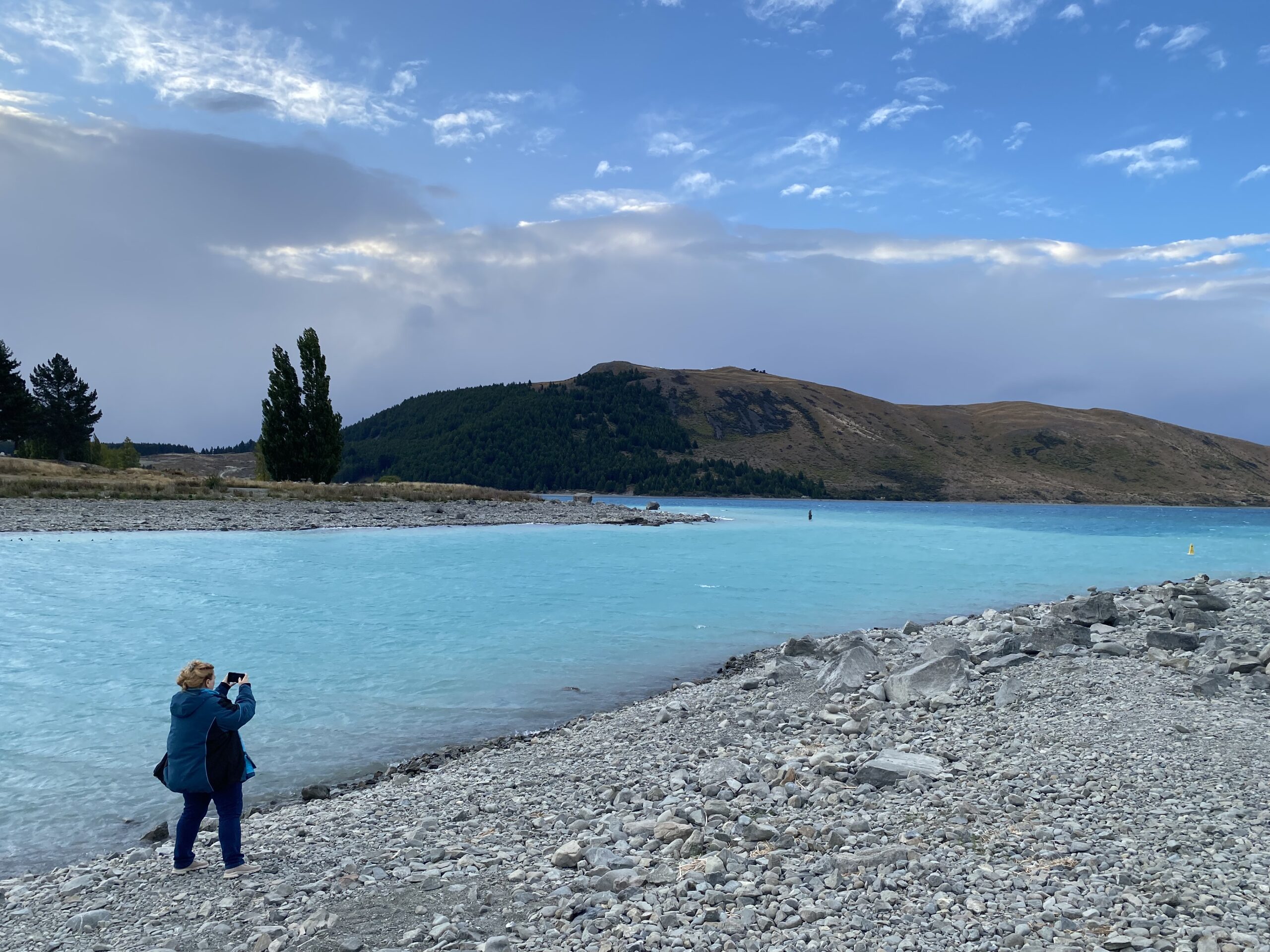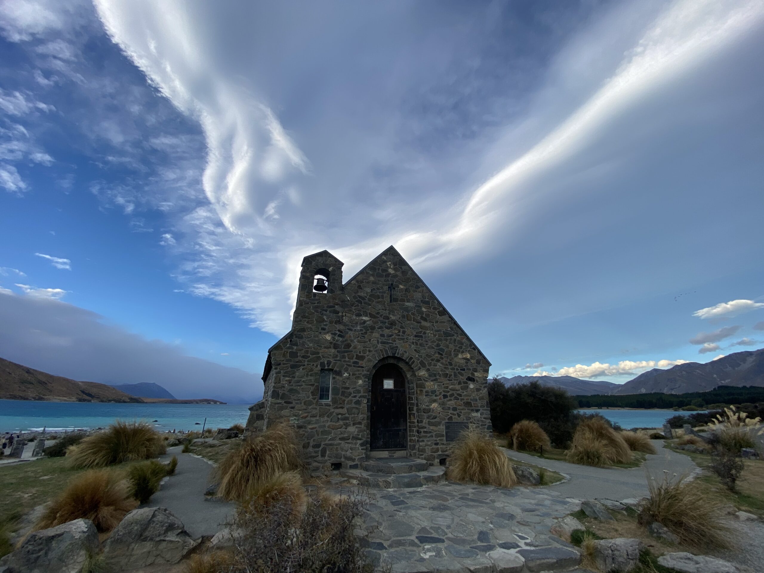 Vi fik set den største turist ting her, en gammel og meget lille kirke. The Church of the Good Shepherd. Fandt ud af at den ikke var så gammel som jeg havde troet, den er fra omkring 1935. Den ligger super smukt ud til søen. Folk havde på “stranden” lavet de har små og lidt større varder. Det giver noget sjovt ar se på.