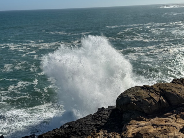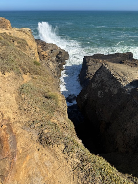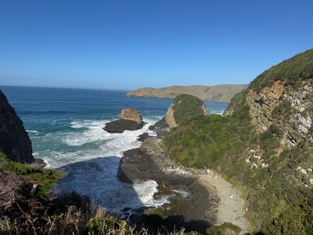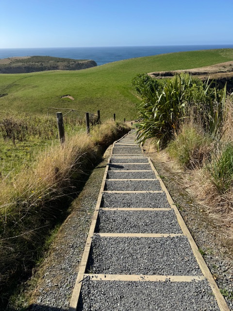 Vores første stop var Jack’s Blowhole, det var ligesom et hul i klippen, hvor vandet så havde lavet en kile hvor det kom ind med vældig kraft. Det var godt nok en 20 min gåtur fra og det samme tilbage. Det var ikke det værd. Det var op og ned af bakker og trapper. Vi fik en meget flot udsigt på vejen men det var det.