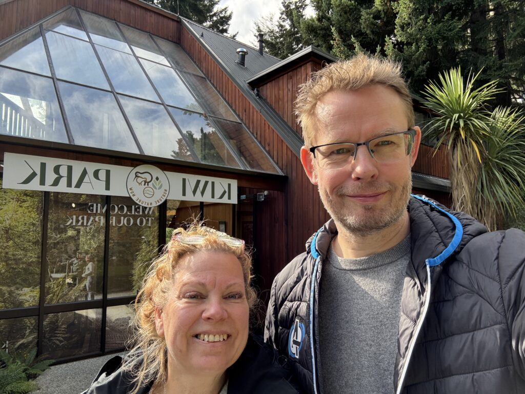 Derefter kørte vi op til en parkeringsplads med plads til autocampere der kun kostede $2 i timen og lå meget tæt på Kiwi Park, hvor man kunne se Kiwier der blev opdrettet med henblik på udsættelse i naturen. Vi var der da de åbnede kl. 9:30 da de åbnede og havde adgang til Kiwi House hvor Kiwierne boede kl. 10.