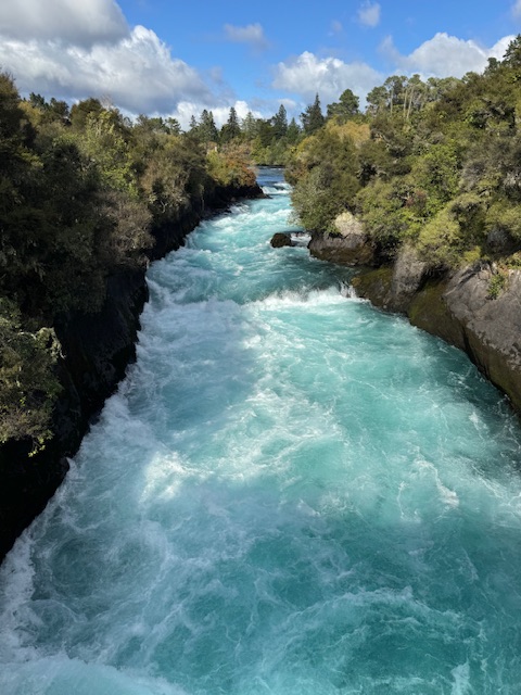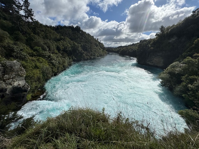 Det første stop var ved Huka Falls. Vi syntes dog ikke helt man kalde det et vandfald, men ved ikke lige hvad man så skal kalde det. Men masser af vand der fosser og har en super fin blå farve.