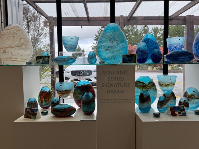 Ikke langt der fra var der nogle som lavede glaskunst, som Regina havde glædet sig meget til at se. De havde en forretning/udstilling af deres ting. De havde nogle virkelig flotte ting og noget som man ikke helt kan forstå man kan lave af glas. Vi fandt en lille ting som kunne ha været sjov at få med hjem. Det var tungt og kostede 500 kr. så det var ikke urimeligt. Men når man ikke er sikker på at det vil overleve turen hjem, så sprang vi over. Så var det godt de også havde en have hvor man kunne nyde deres ting. www.lavaglass.com
