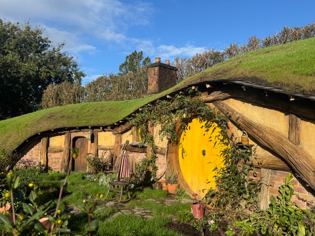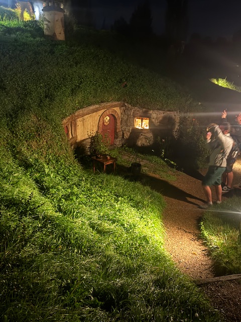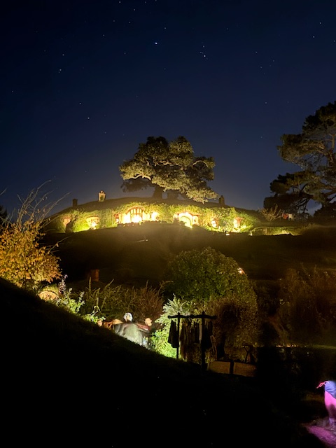 Må have været en oplevelse at se hobbit-boligerne. Har I ikke set filmene, det har jeg. Også hyggeligt med fællesspisning og se det hele når mørket falder på.