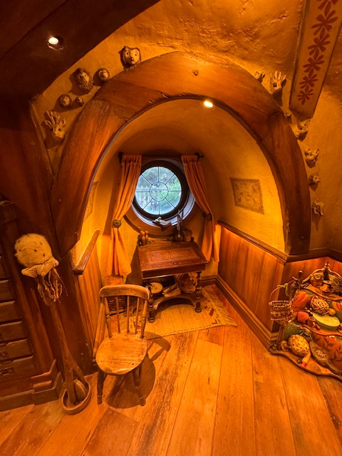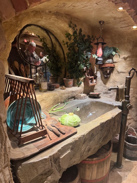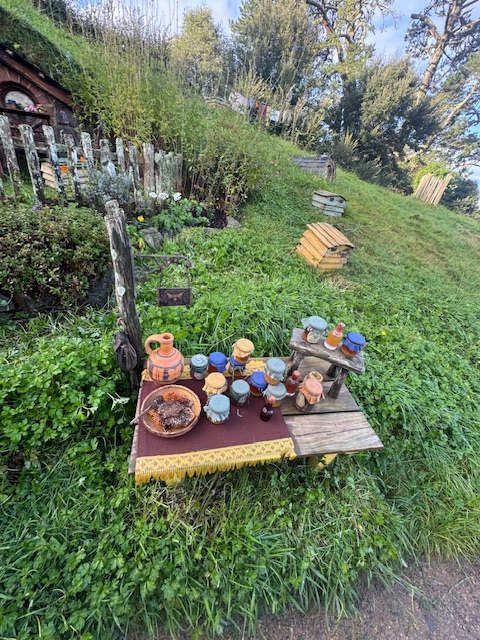 Nå men, ingen af Hobbit-boligerne havde noget inde i, det var alt sammen kun fasader. Alle haverne var rigtige, hvor der voksede frugt og grønt. Det var super fint. Der var også flere gartnere og andre til at varetage det hele. Alt i alt var de omkring 200 ansatte. Men på en sommerdag kørte de også ture hver 10 min., så man må sige at de får nogle folk igennem på sådanne en dag.
