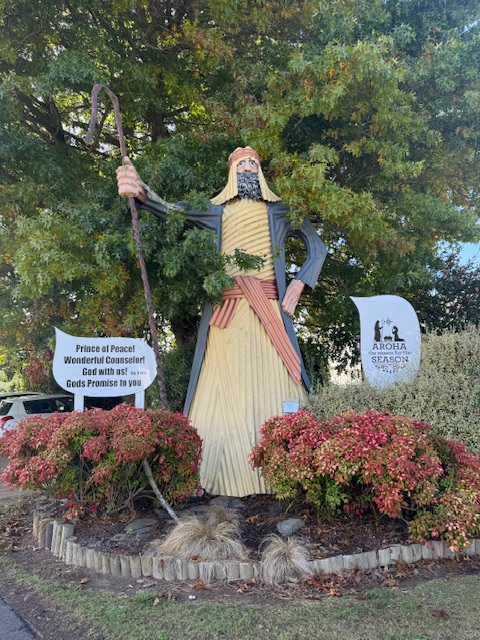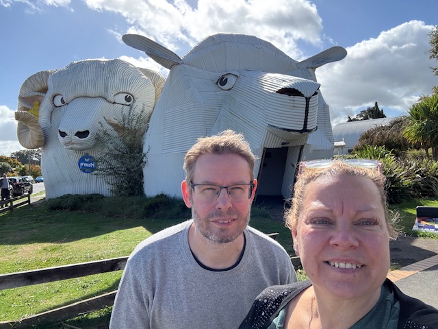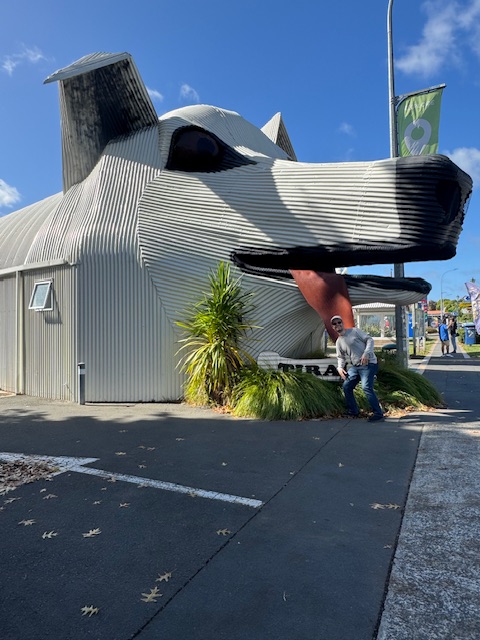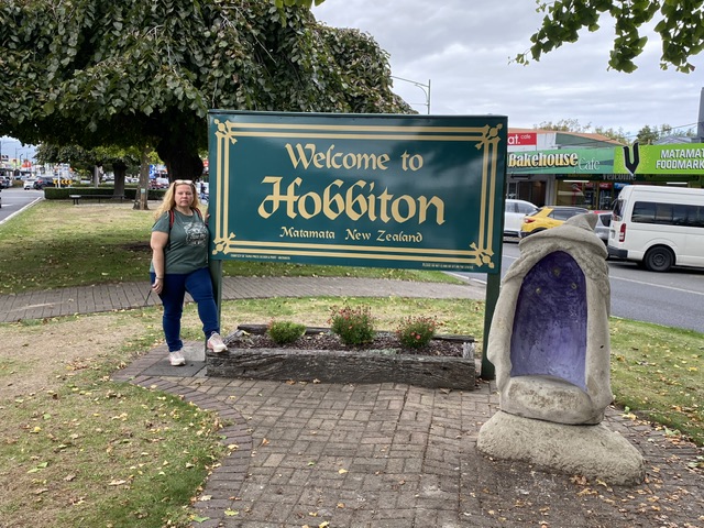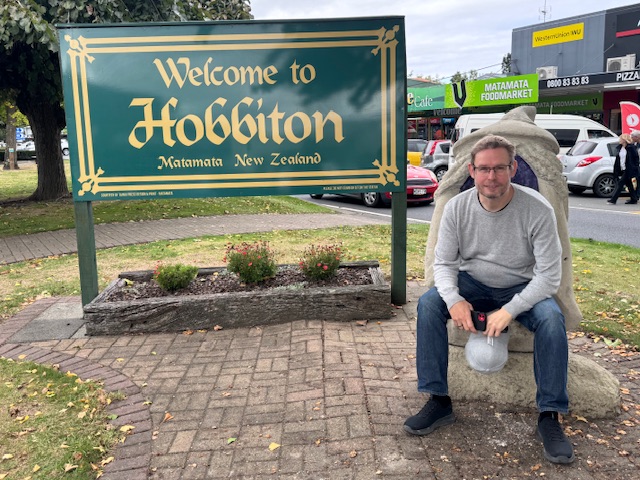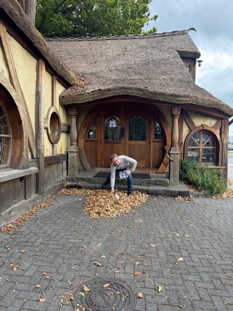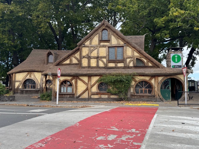 Efter at have taget nogle billeder (der var også andre bygninger der havde fine udsmykninger) kørte vi lidt mere nordpå, til den by som Hobbitton lå tættest på. Derfor havde man valgt at lave toristinformationen så den lignede et Hobbit hus.
