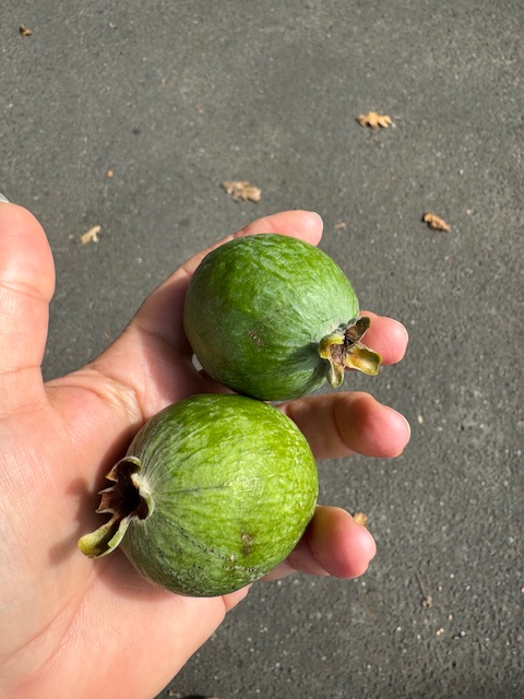 Regina fik sig et par frugter af damen i informationen som hun havde liggende og bare skulle af med. De var supergode og Regina havde en ny favoritfrugt. (Feijoa)