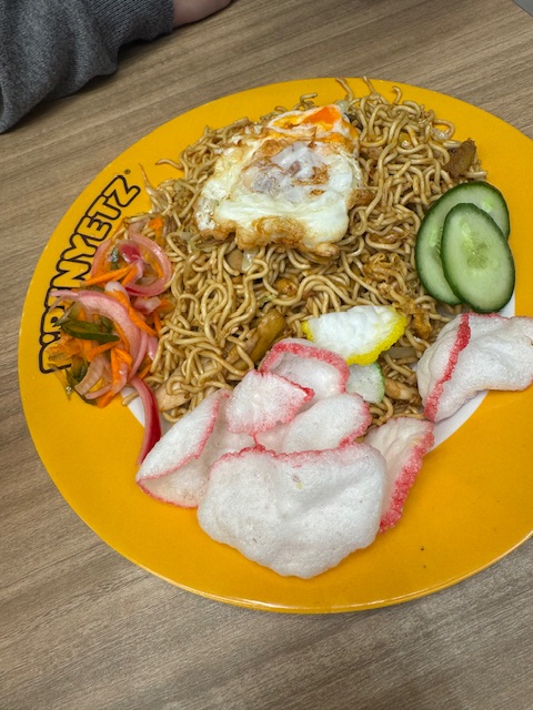 Vi gik tilbage mod hotellet med et par stop på vejen for at se noget eller finde et tissehus. Vi syntes ikke lige vi fandt noget mad på vejen som var interessant. Vi endte helt hjemme ved hotellet og fandt en indonesisk restaurant, hvor der ikke blev spist med kniv og gaffel. Der brugte man klør fem. Dog med en plastik hadske på hvis man ønskede det. Vi fik dog snuppet et par gafler, da nok havde til sådan nogle som os.