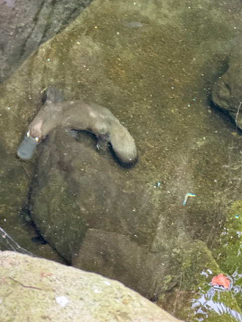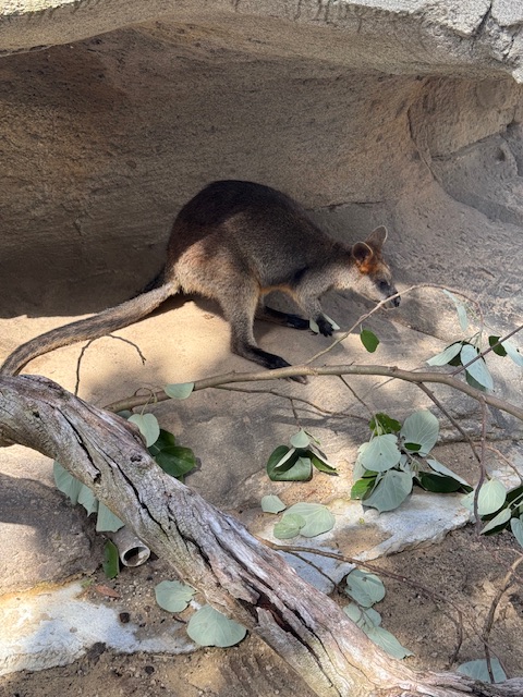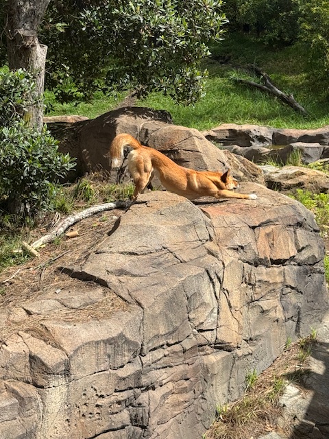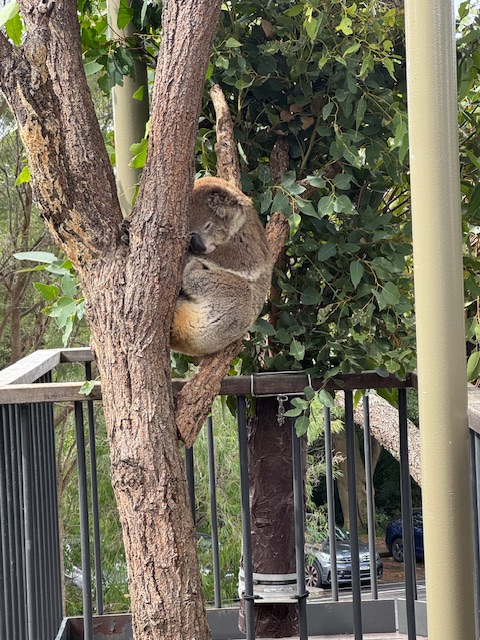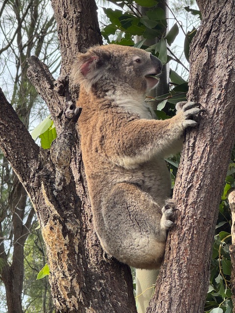 Store søde og bløde koalaer, men vi kunne ikke komme helt tæt på dem, da det var noget som man skulle betale for 15 $ pr person, men der var ikke flere pladser resten af dagen. Så var der jo ikke andet at gøre end at gå på opdagelse of finde røde kænguruer, næbdyr og en der ligner en hund, men er en Dingo. Men der er masser af andre små og store dyr som skulle opdages.