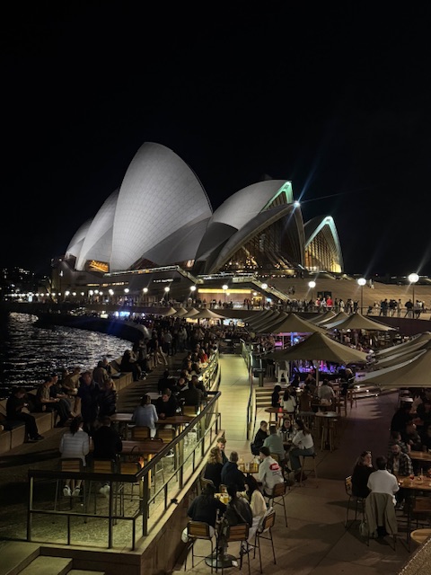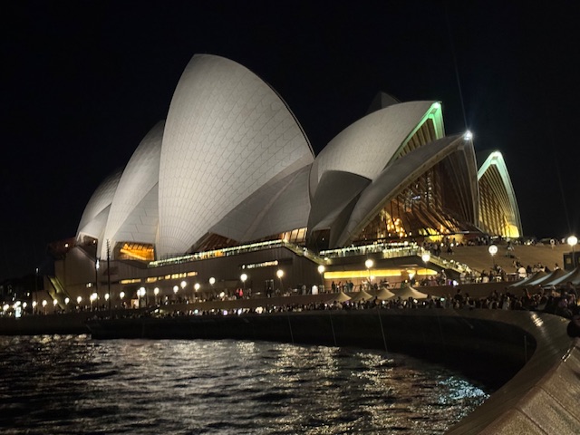 Vi startede den med at tage deres letbane, som køre til tiden og er ganske gode. Det var ikke mange stop før vi skulle af igen nede ved havnen og så gå det sidste stykke og se det hele i mørket. Det er en stor oplevelse at skulle ind og høre en koncert derinde, i operaen naturligvis.