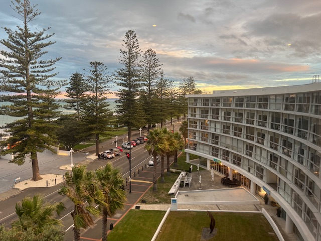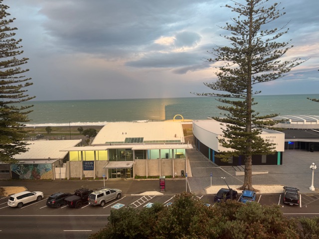 På hotellet prøvede manden i receptionen om han kunne opgradere os til et bedre værelse. Vi havde fået tildelt et i stuen, som var virkeligt fint. Det han ville viste os var et på 5 sal, hvor man kunne se havet.